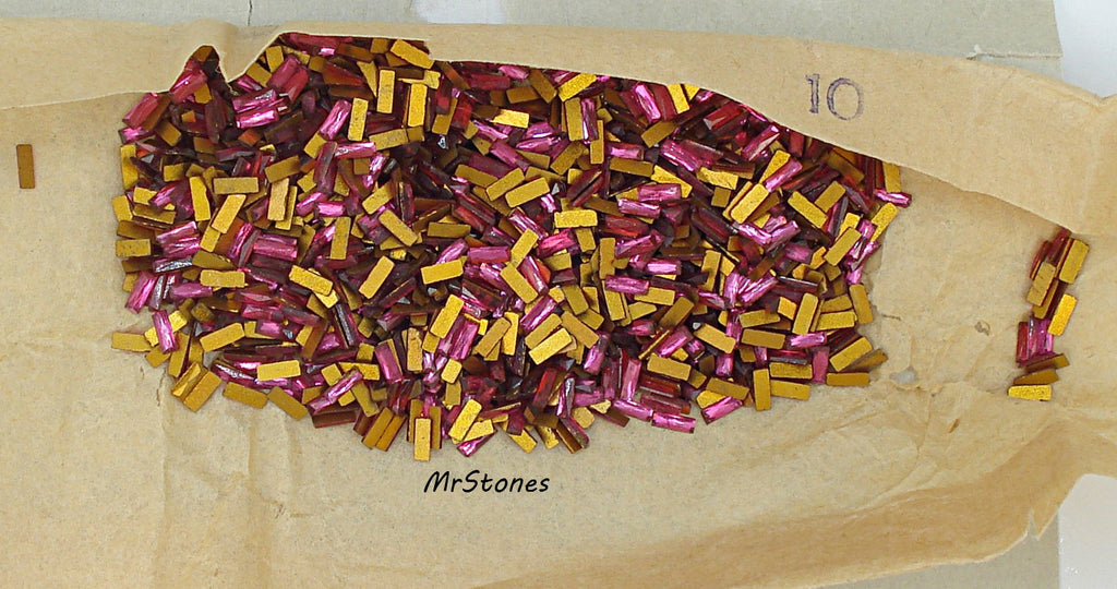 4x1.5 mm (3932) French Cut Ruby Flatback Czech Baguettes Gold Foiled Vintage Rhinestones. 1pc/$0.35 - 10pc/$1.95 - 100pc/$10.95