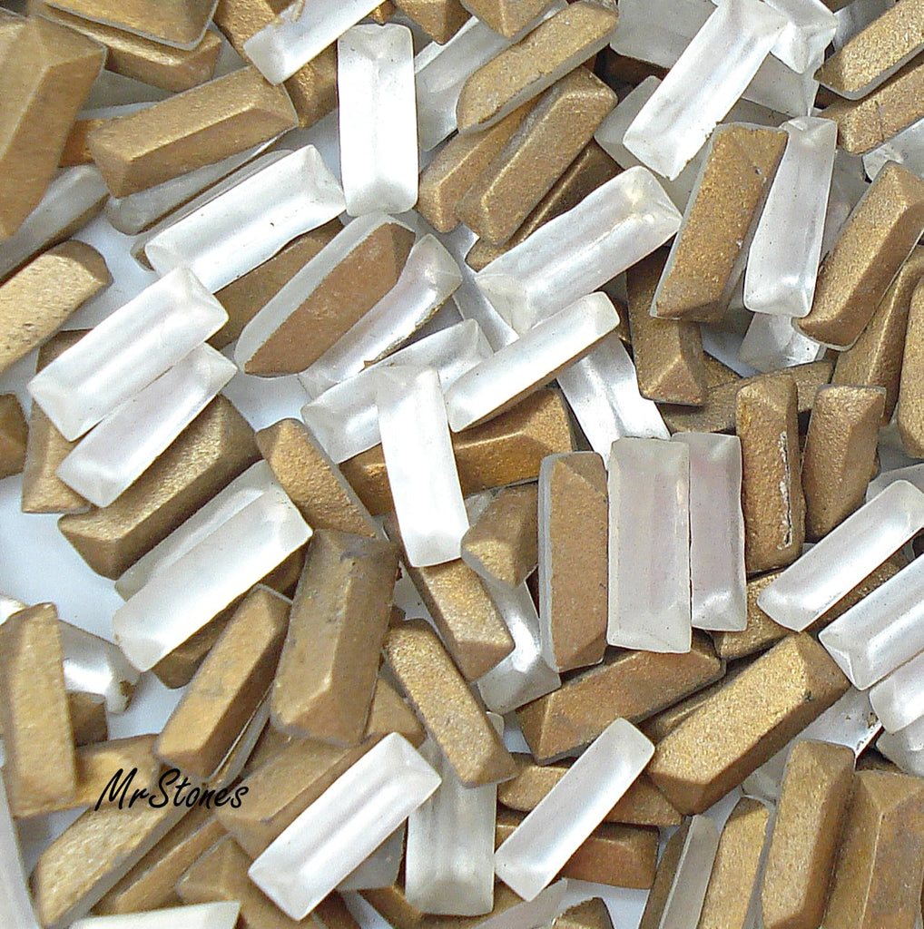 5x2 mm (4500) Frosted Crystal Baguette Gold Foiled Vintage Rhinestones.