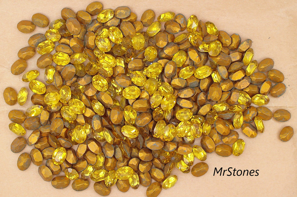 8x6 mm (4120) Topaz Oval Shape Swarovski Art. 276 M/C Gold Foiled Vintage Rhinestones. 3pcs/$1.00
