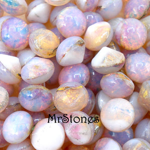 9mm (1684) Fire Opal Harlequin Glass Round Cabochon 10pk