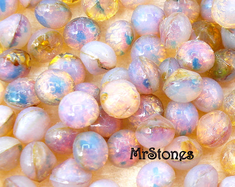 10.9-11.3mm (3189) (48ss) Mint Green Brown Vein Matrix Round Buff Top Doublets 4pc $1.00