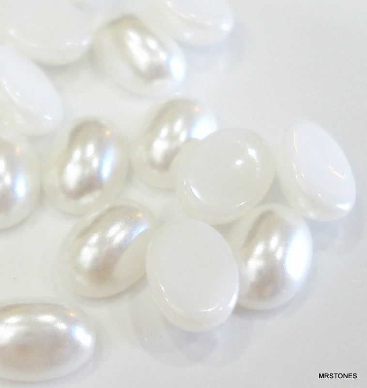 7x5 mm White Imitation Pearls Glass Oval Cabochons.