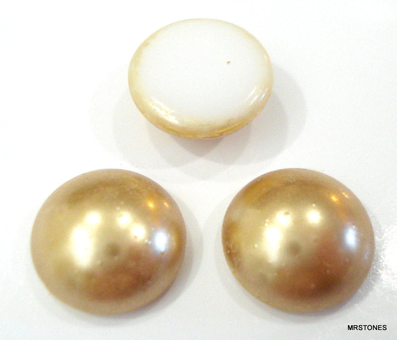 11 mm 11.0 Gold Glass Pearls Rounds Cabochons.  No hole mount. 5mm height.