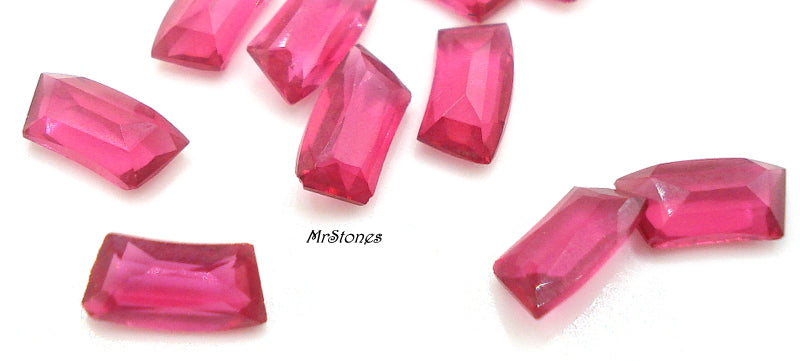 6x3 mm (4535) Ruby Un-foiled Curved Baguettes Vintage Glass Rhinestones.