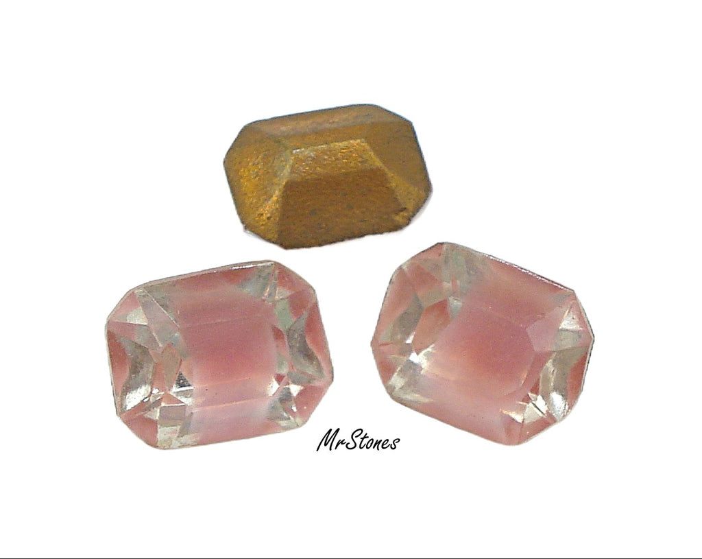 10x8 mm (4600/2) Pink Givre Cushion Octagons Gold Foiled Vintage Glass Rhinestones.