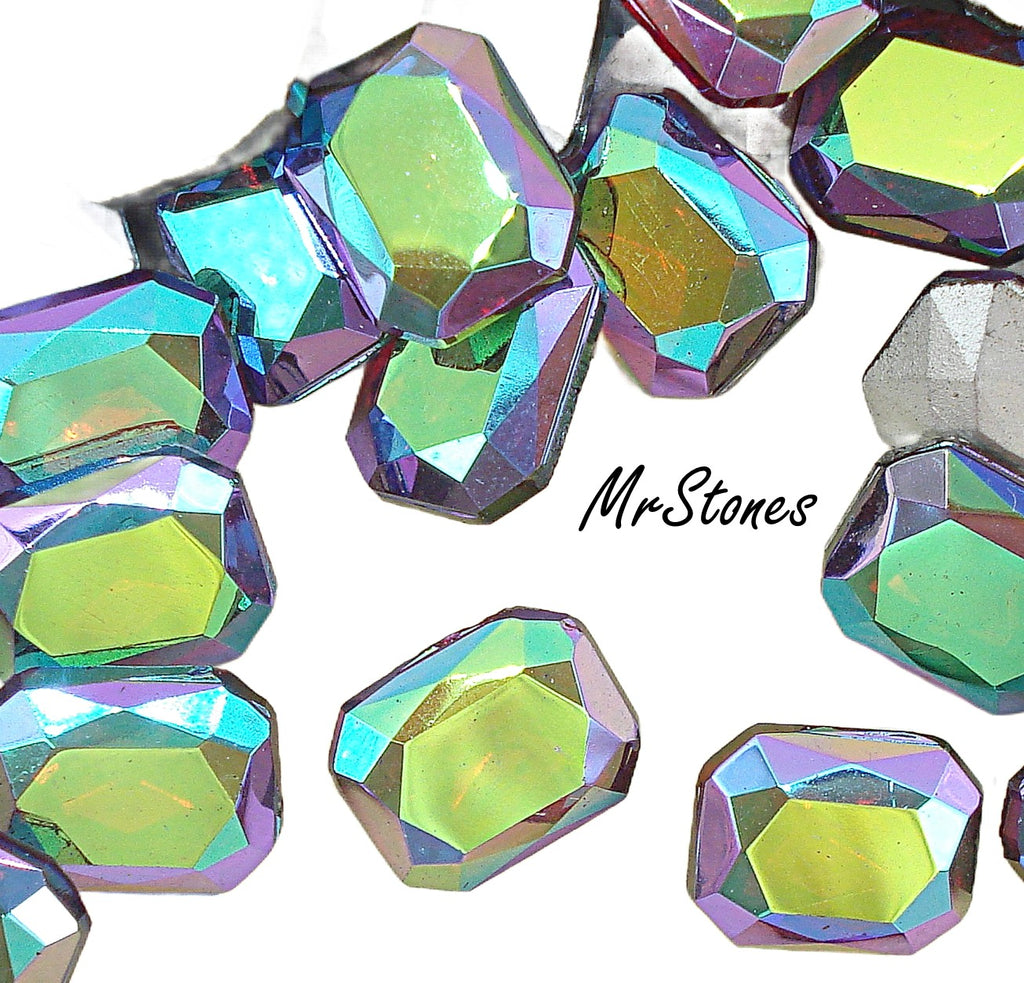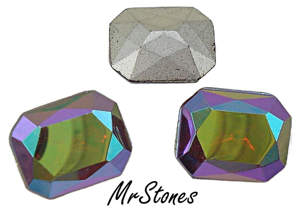 10x8 mm (4626/2) Ruby Red AB Cushion Octagon TTC Gold Foiled Vintage West German Rhinestones.