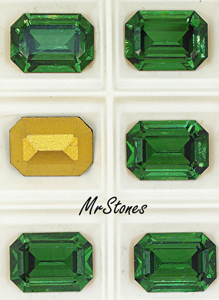 14x10 mm (4610) Green Turmaline Step Cut Cushion Octagon DS Co. Gold Foiled Vintage Swarovski Rhinestones.