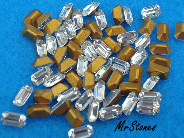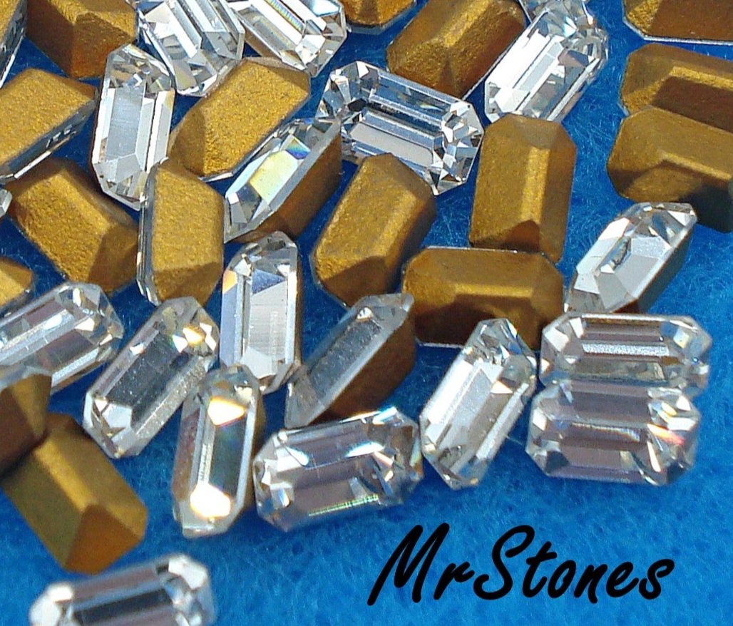 5x3 mm (4600) Crystal Cushion Octagon Gold Foiled Vintage Swarovski Rhinestones. 20pcs/$2.95