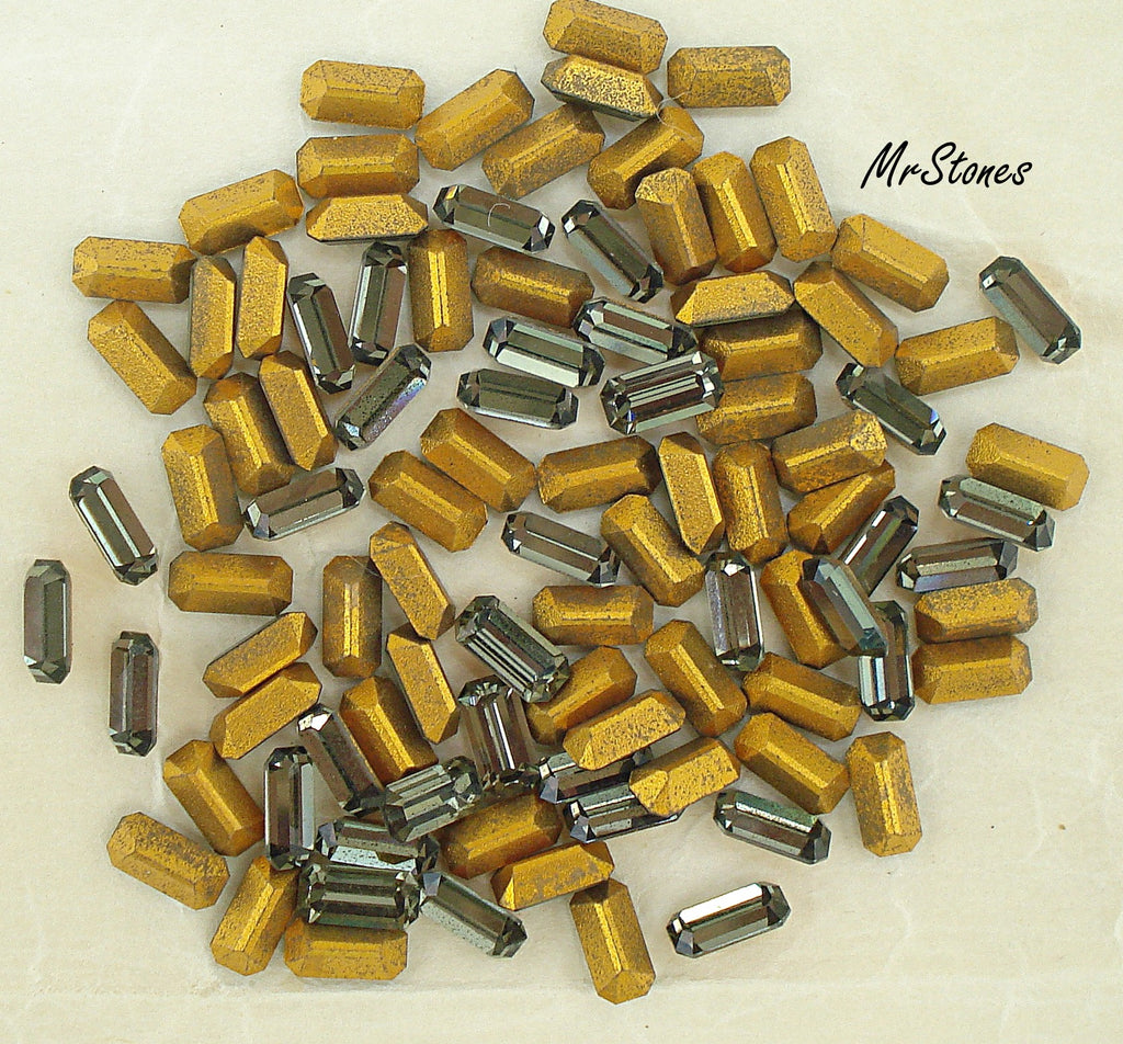 6x3 mm (4600) Black Diamond Cushion Octagon Swarovski KS Co. Gold Foiled KS Co. Art. 176/1 Vintage Rhinestones.