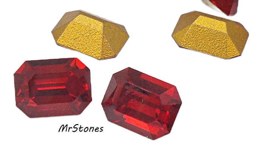 8x6 mm (4600) Light Siam Red Cushion Octagons Gold Foiled Vintage Rhinestones.
