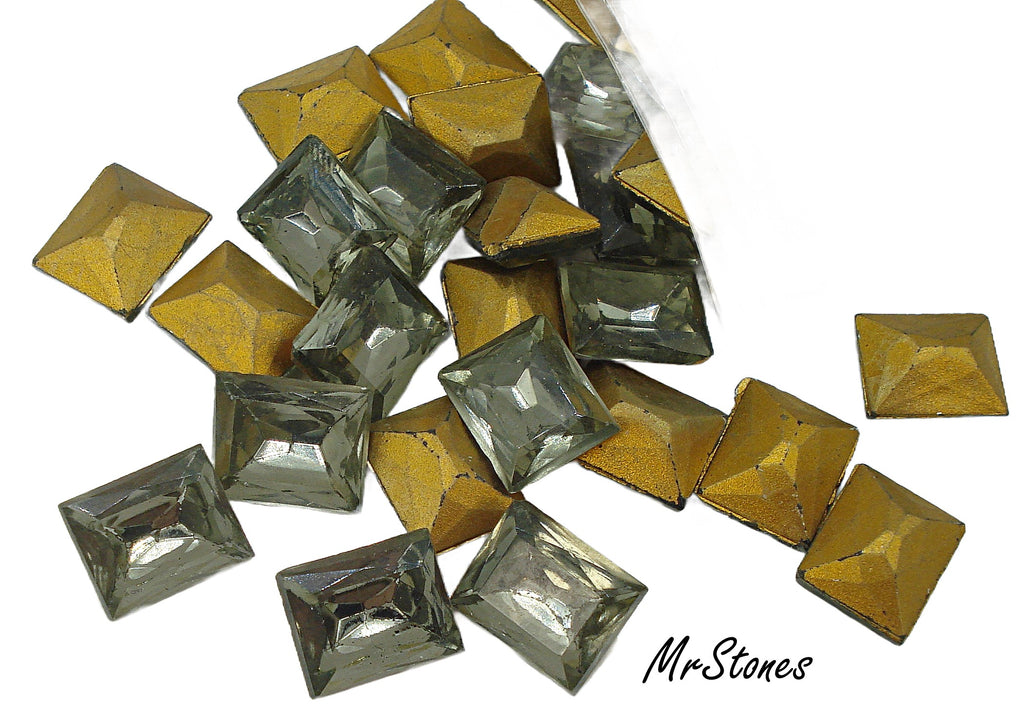 10x8mm (4526/2) TTC Black Diamond Cushions Gold Foiled Vintage Rhinestones. *Some are starting to pepper a little bit.