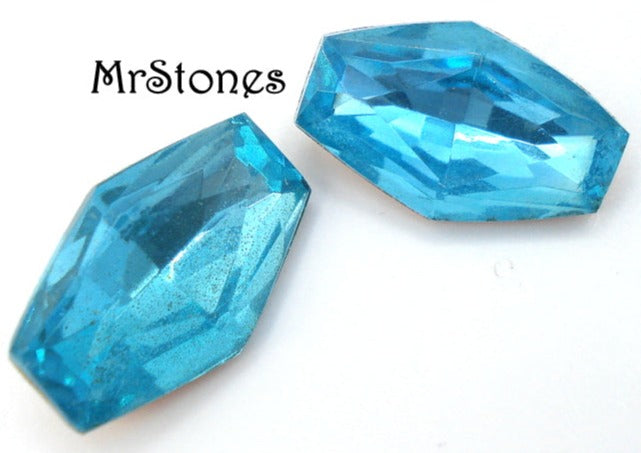 12x8 mm (4750/2) TTC Czech Aqua Blue Green Coffins Vintage Gold Foiled Rhinestones.