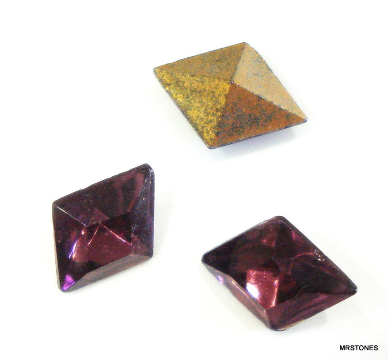 10x7 mm (4710) Amethyst Czech Diamonds Gold Foiled Pointed Back Vintage Rhinestones.