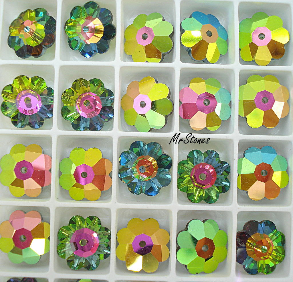 10 mm 10.0 (3700) Vitrail Medium Margarita Flower Bead Center Hole Vintage Swarovski DS Co. Rhinestones.