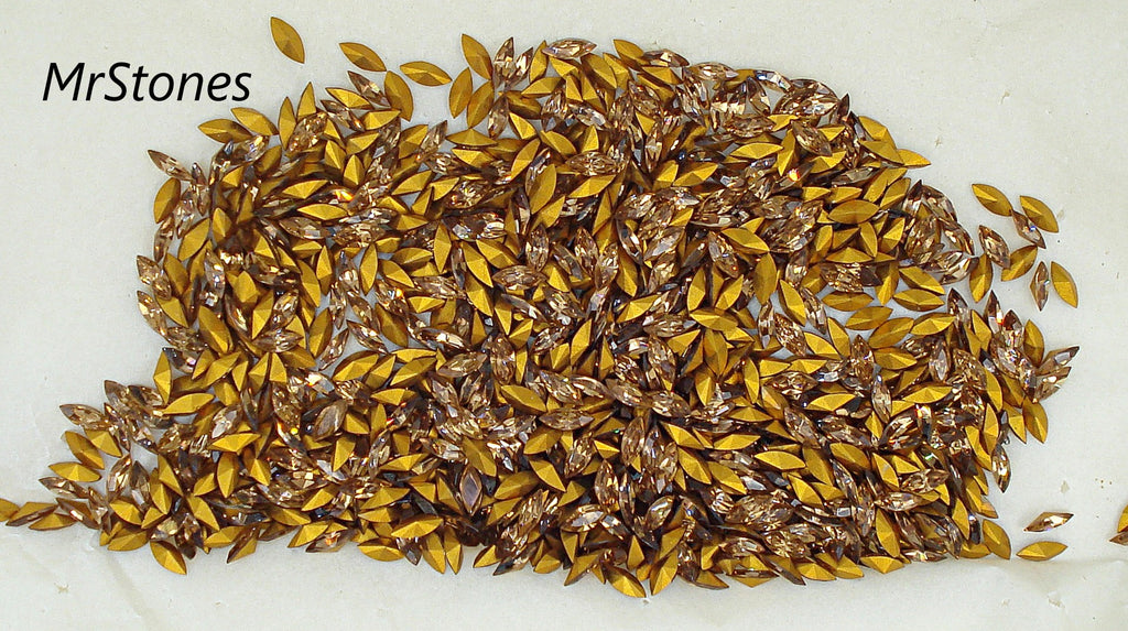 5x2 mm (4200) Light Smoked Topaz Marquises Navettes Gold Foiled Vintage Swarovski Rhinestones.