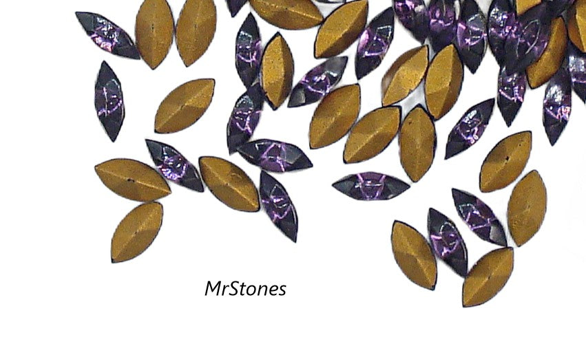 6x3 mm (4200/2) TTC Amethyst Purple Marquise Navette France Demi-Fin Gold Foiled Vintage Rhinestones.