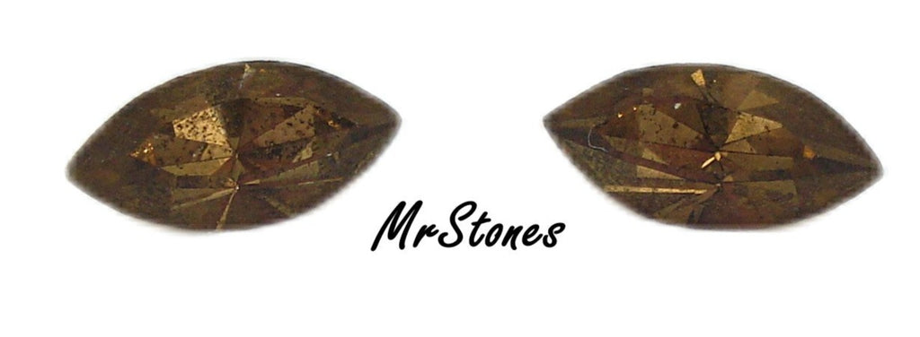 8x4 mm (4200) M/C Czech Smoked Topaz Marquises Navettes Gold Foiled Vintage Rhinestones.
