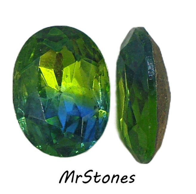 18x13mm (4130/2) TTC Bi Color Peridot Sapphire Ovals Gold Foiled West Germany Rhinestones. *Some have a little foil spotting, but still look rather nice.