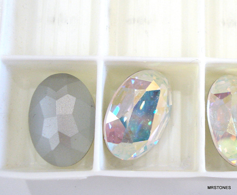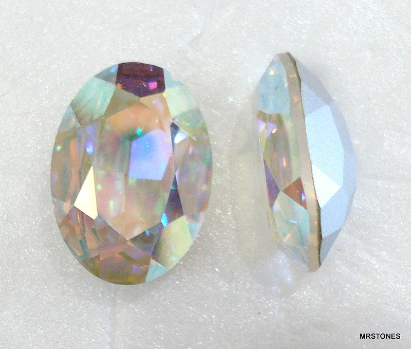 18x13 mm (4140) Crystal AB Oval Pointed Backs. Vintage Swarovski Machine Cut Silver Foiled Rhinestones.