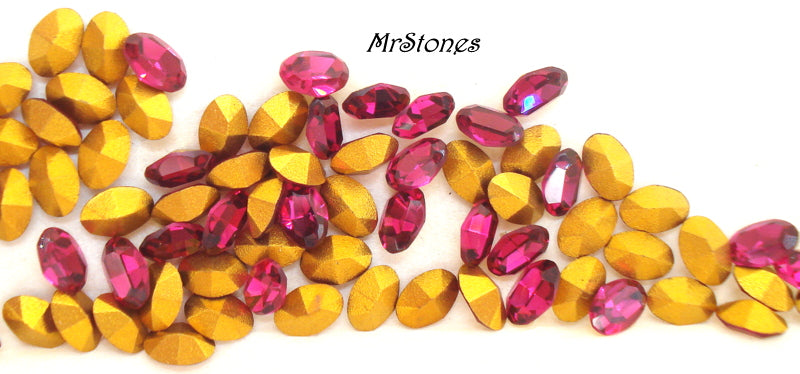 4.5x3 mm (4100) Ruby Fuchsia Ovals Vintage Swarovski (1967) Gold Foiled Rhinestones.