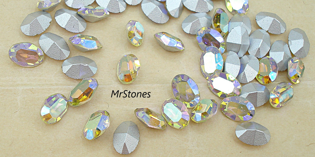 7x5 mm (4100) Jonquil AB Oval Shape Swarovksi KS Co. Art. 286 Gold Foiled Vintage Rhinestones.