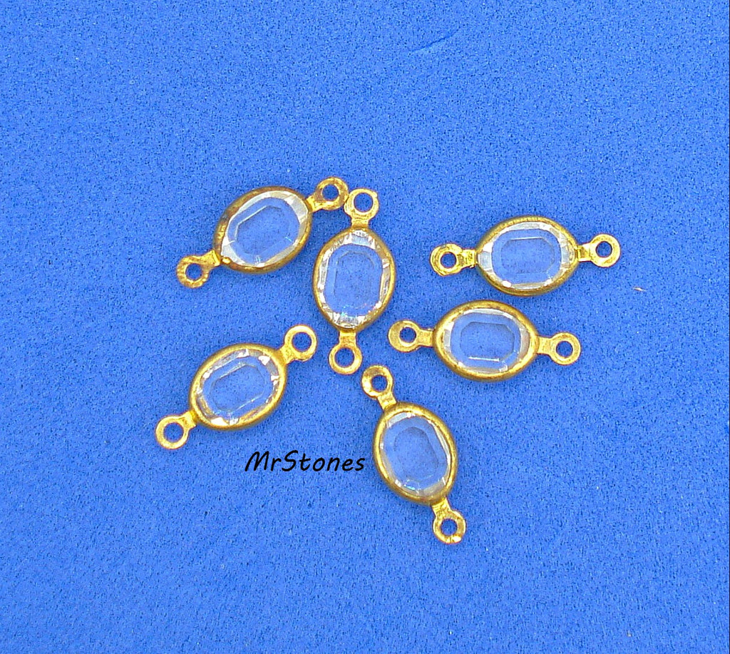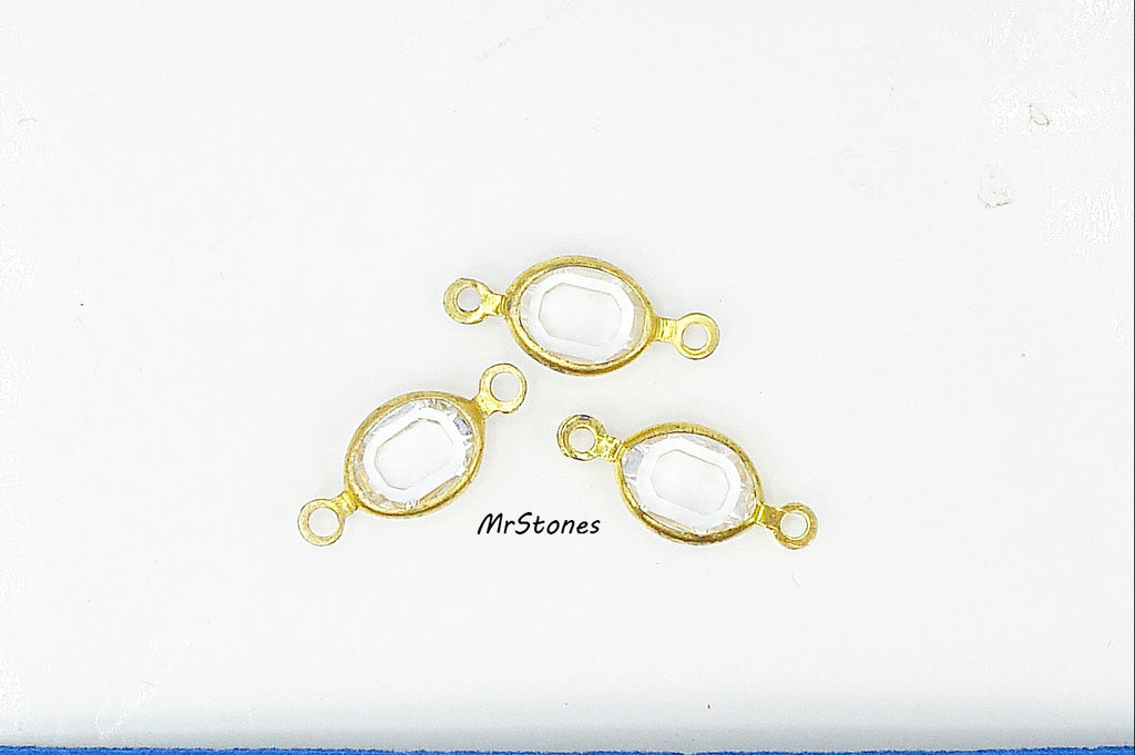 8x6mm (LINK) Crystal Channel Cut, in Gold Tone Bezel Vintage Finding.