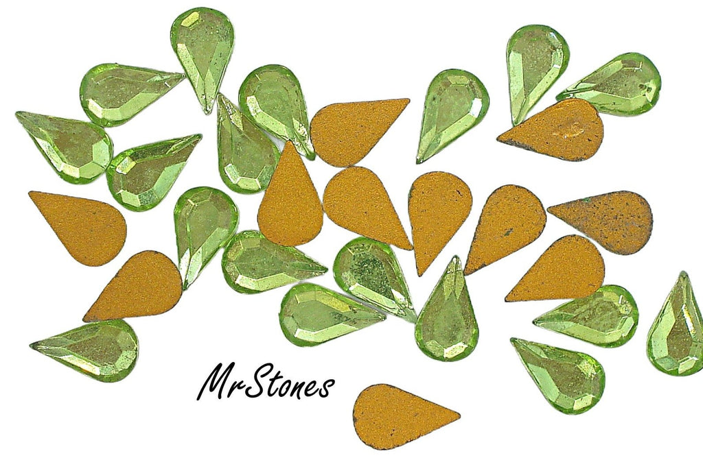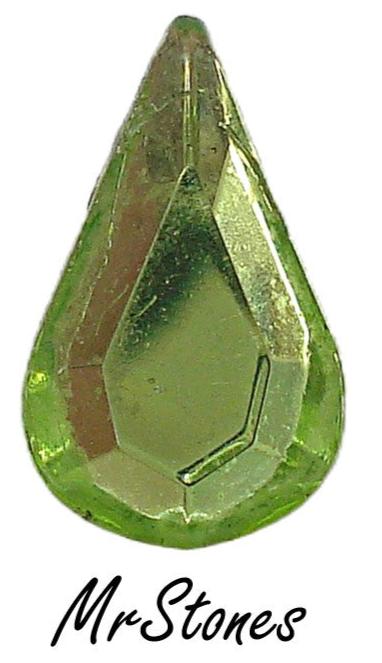 10x6 mm (2300/2) Peridot Green Pear Shape Flat Back Gold Foiled Vintage German Rhinestones. Some are peppering a little.