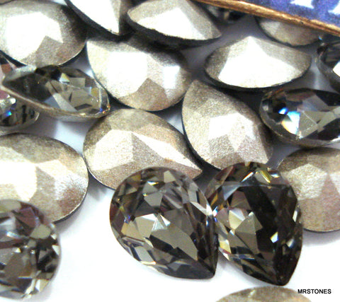8x6mm (4320) Black Diamond Pear Pendeloque Shape Silver Foiled New Swarovski