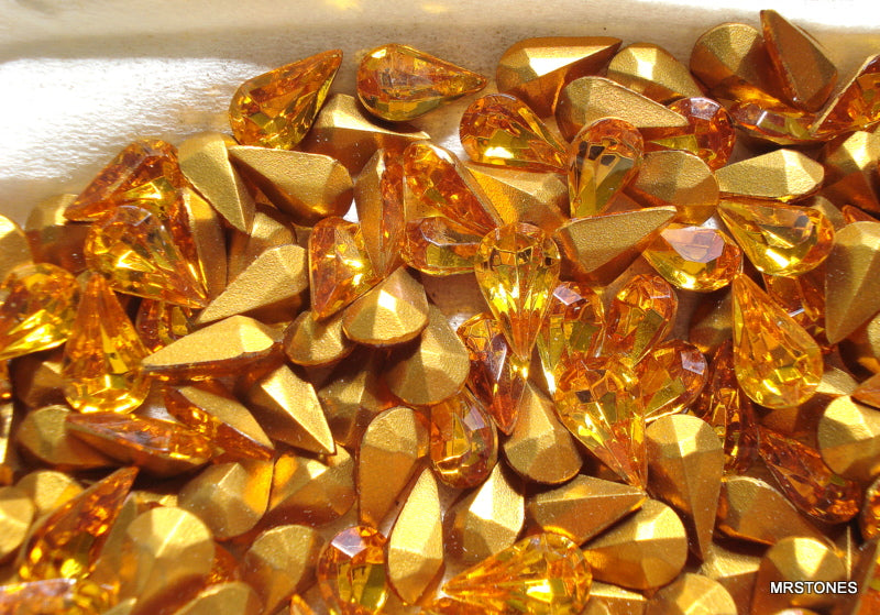 10x6 mm (4300/2) TTC Topaz Pear Shape A Quality Vintage Swarovski Gold Foiled Rhinestones.