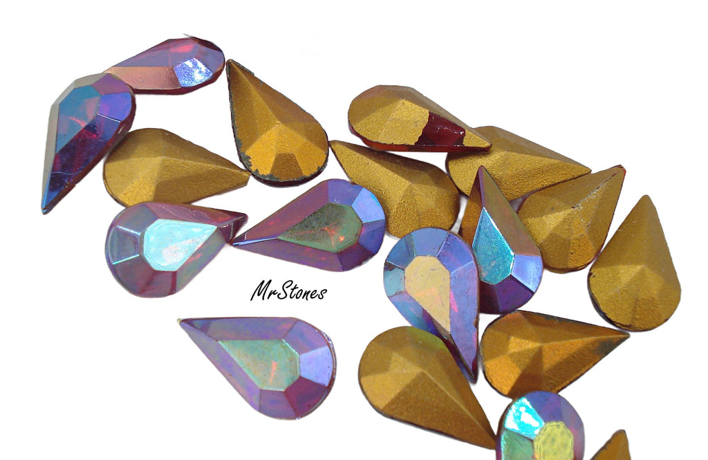 13x7.8 mm (4300) Siam AB Pears Gold Foiled Vintage Rhinestones. m/c