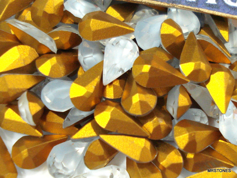 8x4.8 mm (4300) Light Blue Givre' Gold Foiled Pointed Back Rhinestone Pears.