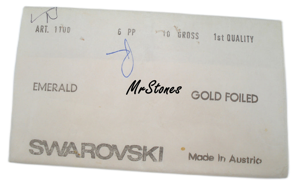 1.3 mm (1100) (6pp) Emerald Green Round Chatons Swarovski Gold Foiled Vintage Rhinestones. 10pk/$1.00