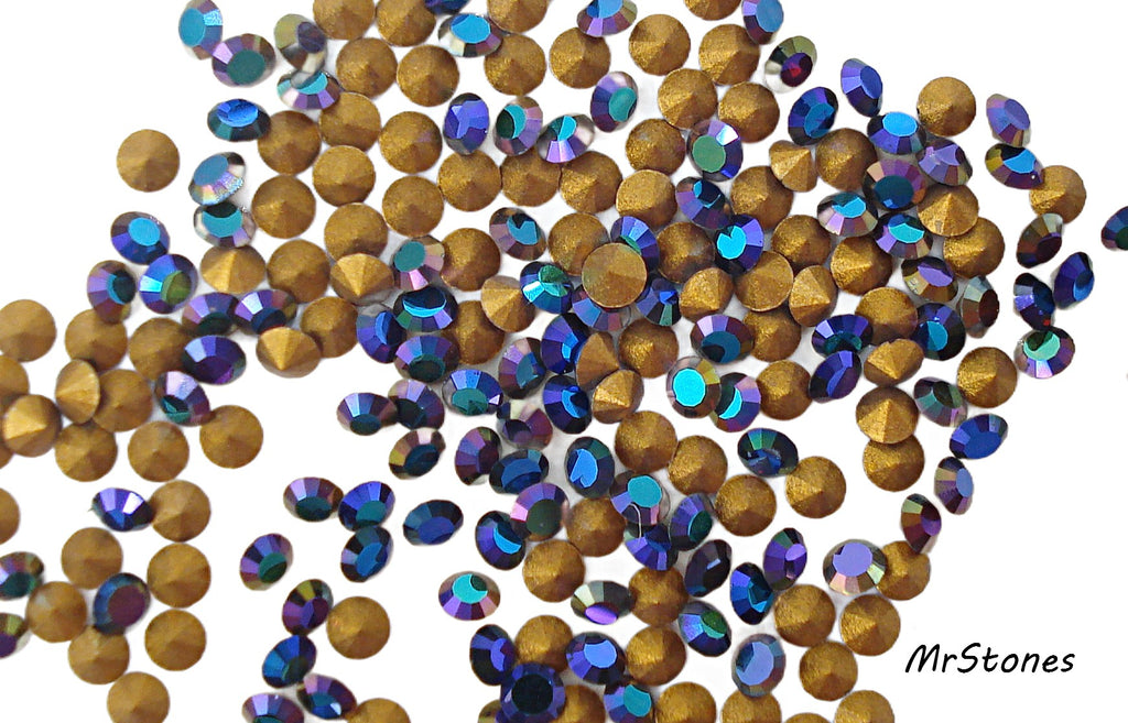 1.5 mm (1012) (9pp) Garnet AB Round Chatons Gold Foiled Rhinestones. 10pk/$1.00