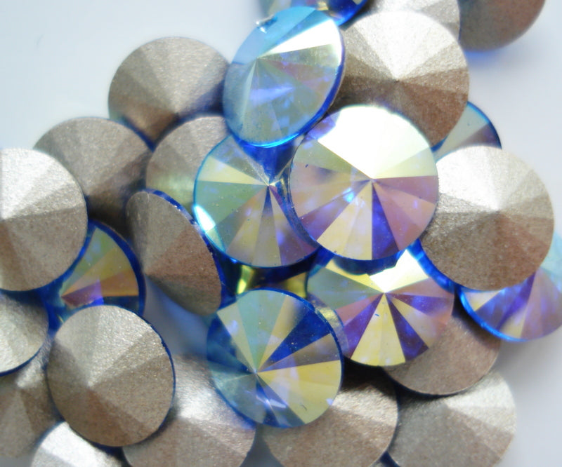 6.25 mm (1122) (29SS) Sapphire AB Round Rivoli Foiled Pointed Back.
