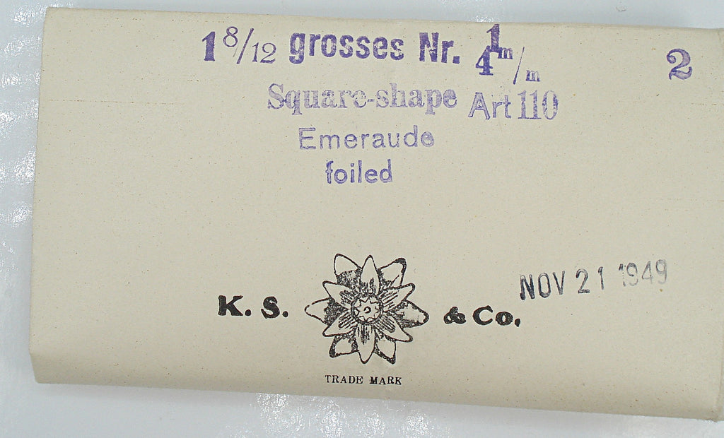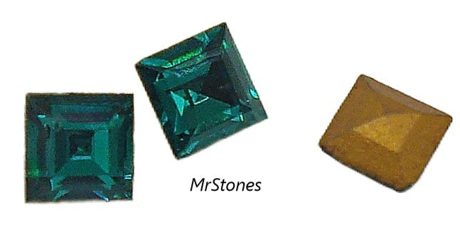 4.1 mm (4410) Emerald Green Step Cut Squares Gold Foiled Vintage Rhinestones Swarovski KS Co Art. 110.