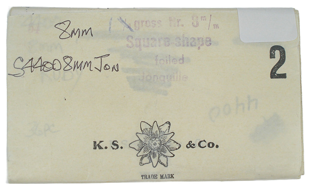 8 mm 8.0 (4400) Jonquil Yellow Squares Gold Foiled Vintage Swarovski KS Co. Rhinestones.