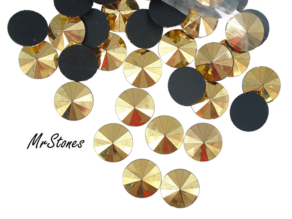 16 mm 16.0 (2006) Arum Gold Round Flatback Rivoli West Germany No Foiled Vintage Glass Stones. Metallic Look.