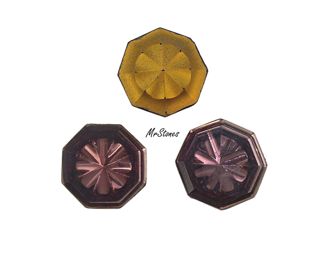 23 mm 23.0 Octagon Shallow Cut Glass Vintage Gold Foiled Rhinestones.