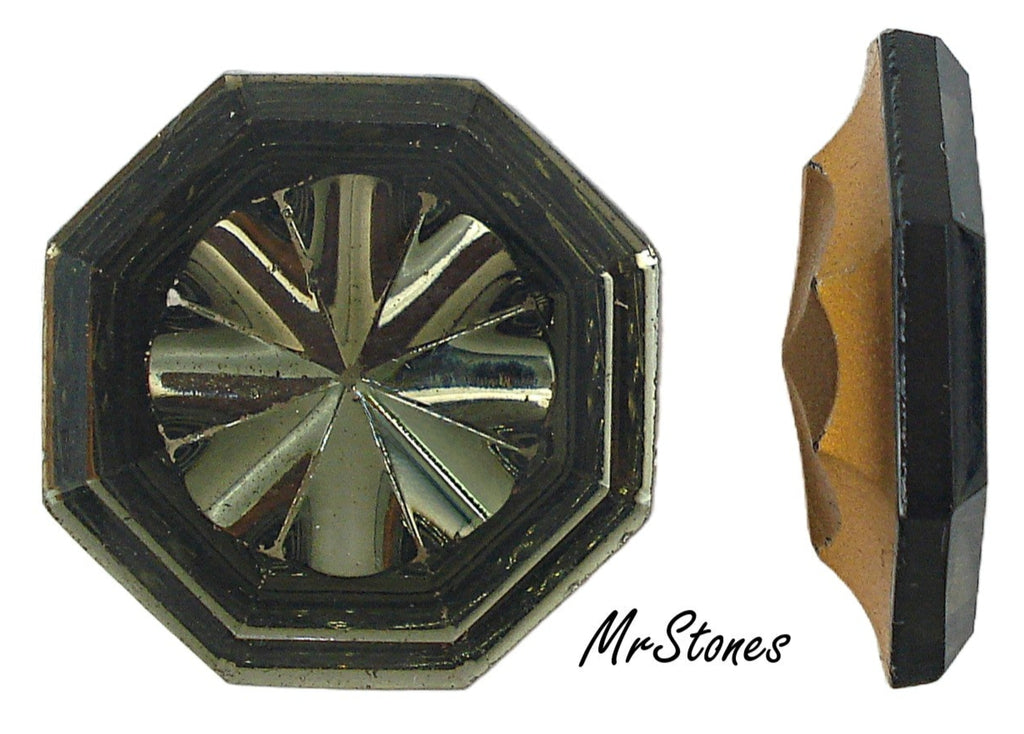 23 mm 23.0 Black Diamond Octagon Shallow Cut Glass Vintage Gold Foiled Rhinestones.