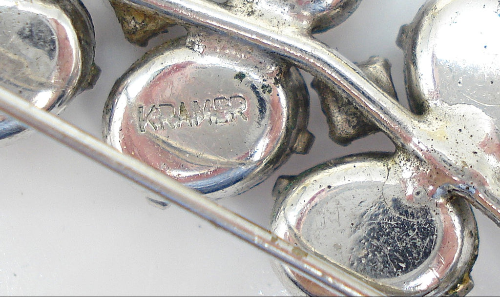 ~Kramer Brooch Silver Tone Prong Set Amethyst Variety of Rhinestones in Oval and Rounds, 1 AB Round Accent Stone. 2.5" Nice Vintage Condition.