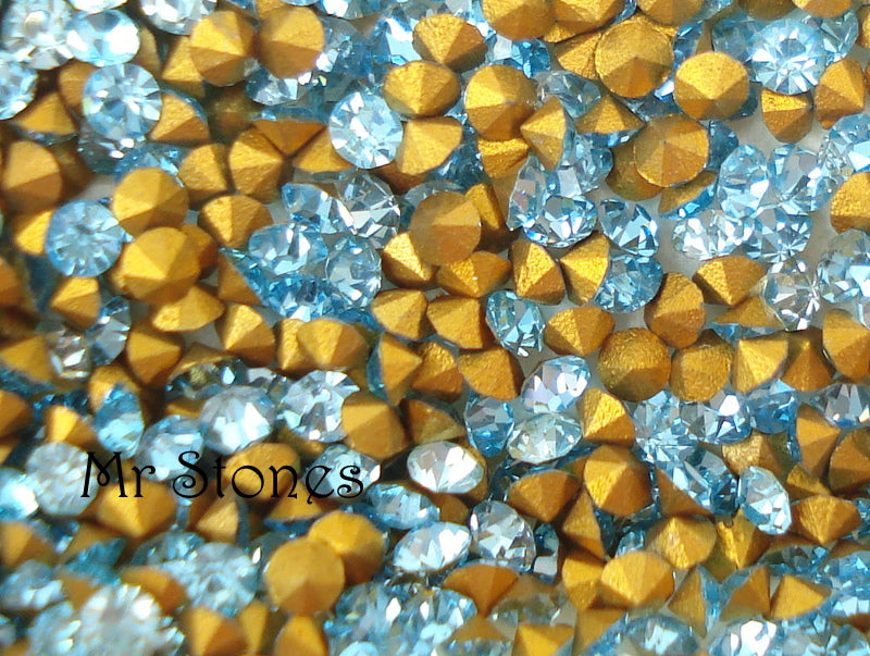 1.6 mm (1100) (10pp) Aqua Marine Blue Round Chatons.  Vintage Swarovski Rhinestones.