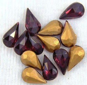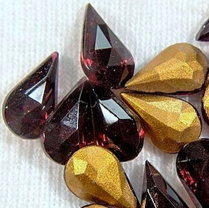 10x6 mm Pear Shape Imitation Garnets Antique Cut. Glass Garnet colored stones cut to imitate Bohemian Garnet stones.
