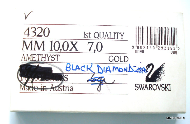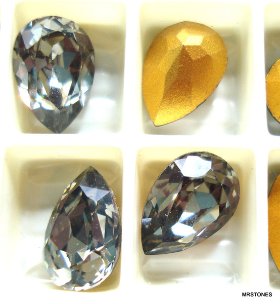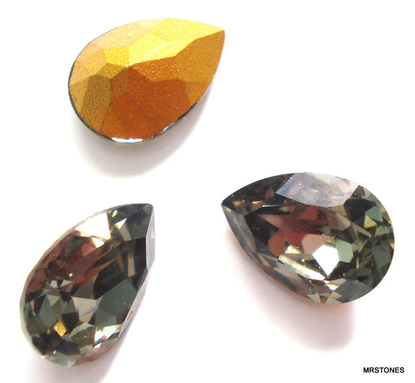10x7 mm (4320) Black Diamond Pendeloques Pears Gold Foiled Vintage Swarovski Rhinestones.