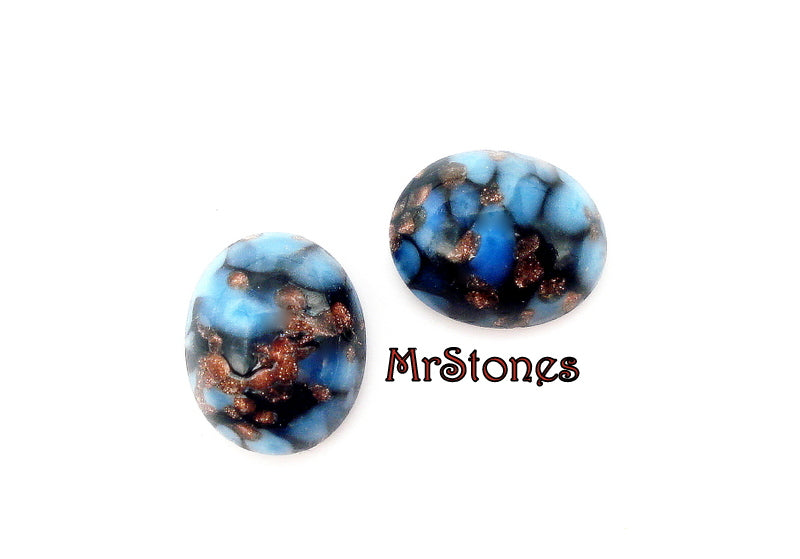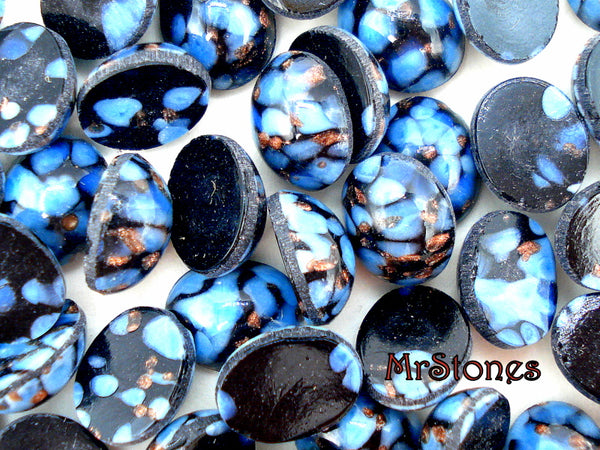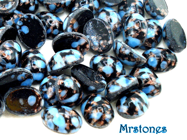 10x8 mm (1685) Blue Turquoise Matrix Black Copper Glitter Veins Ovals Glass Cabochons Czech Presiosa Stones.