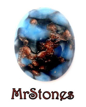 10x8mm (1685) Blue Turquoise Matrix Black Copper Glitter Veins Oval Glass Cabochon