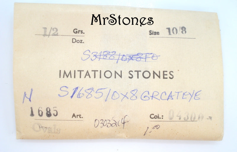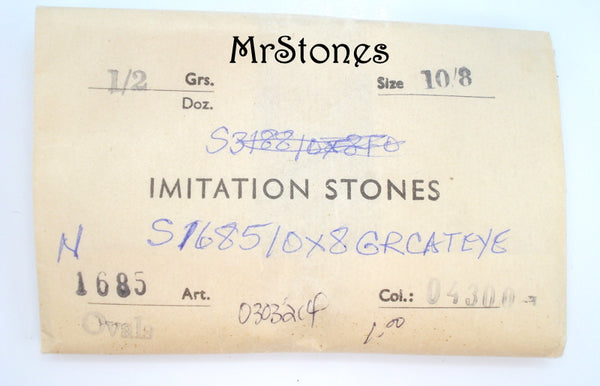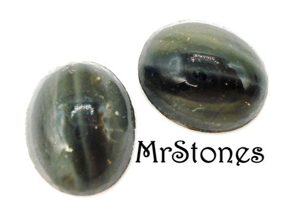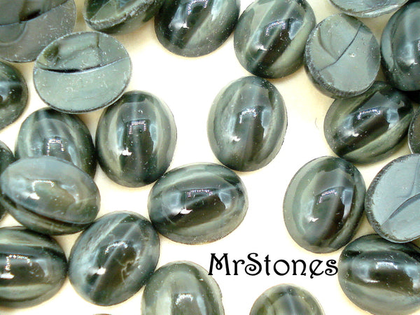 10x8 mm (1685) Gray Cats Eye Oval Cabochon Glass Czechs Vintage Stones.