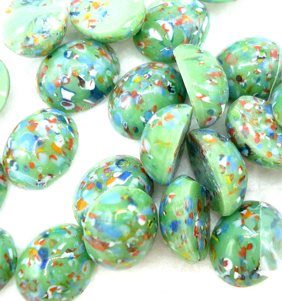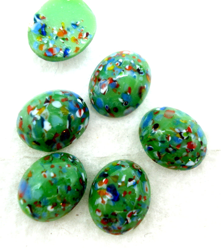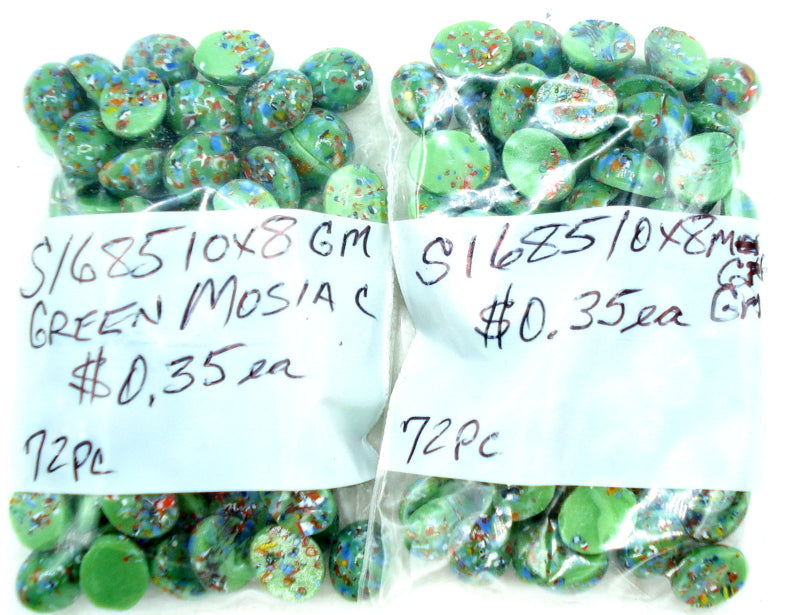 10x8 mm (1685) Green Mosaic Glass Ovals Cabochons.