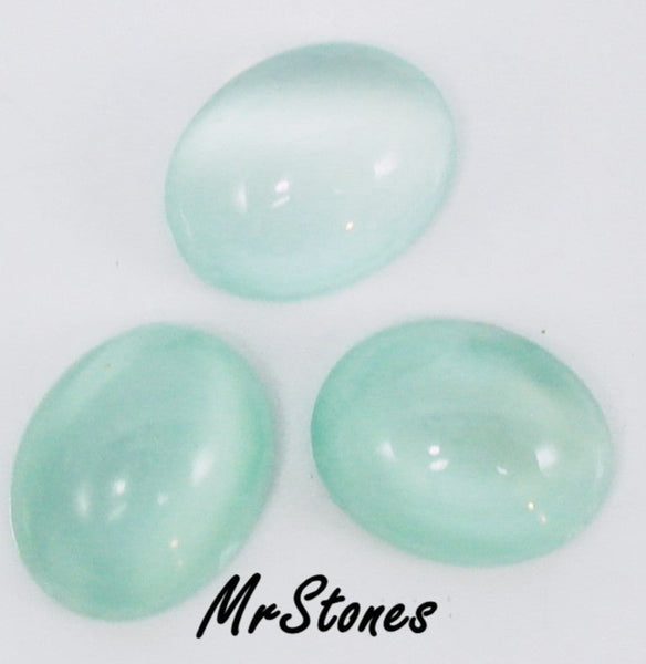 10x8 mm (2195) Mint Green Moonstone Ovals Cabochons Vintage Glass Stones.