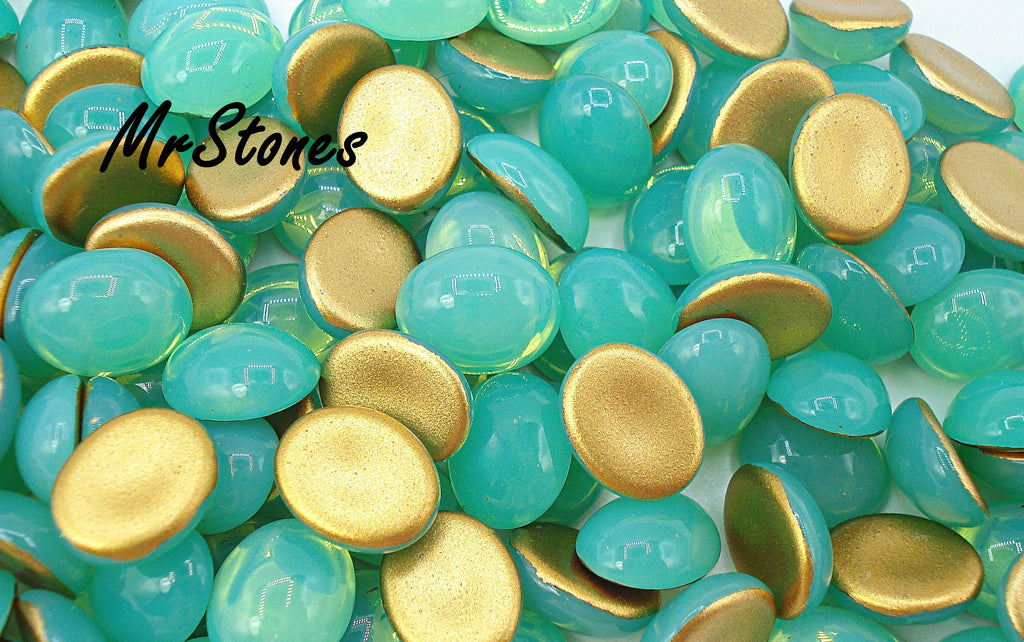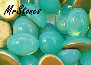 10x8 mm (2195) Mint Seafoam Green Opal Oval Cabochons Gold Foiled Czech Glass Stones.