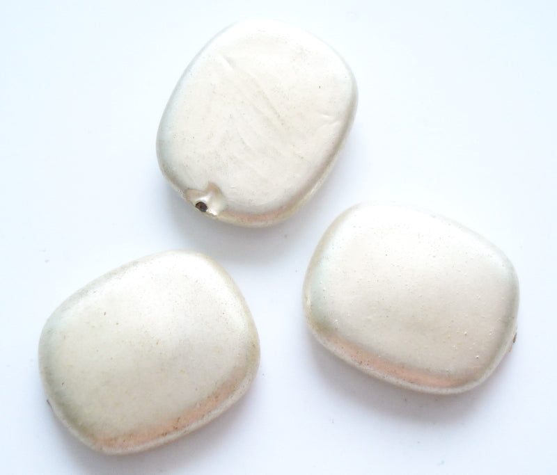 8mm 8.5mm (S14IBT) Textured Glass Creme Button Top Pearl